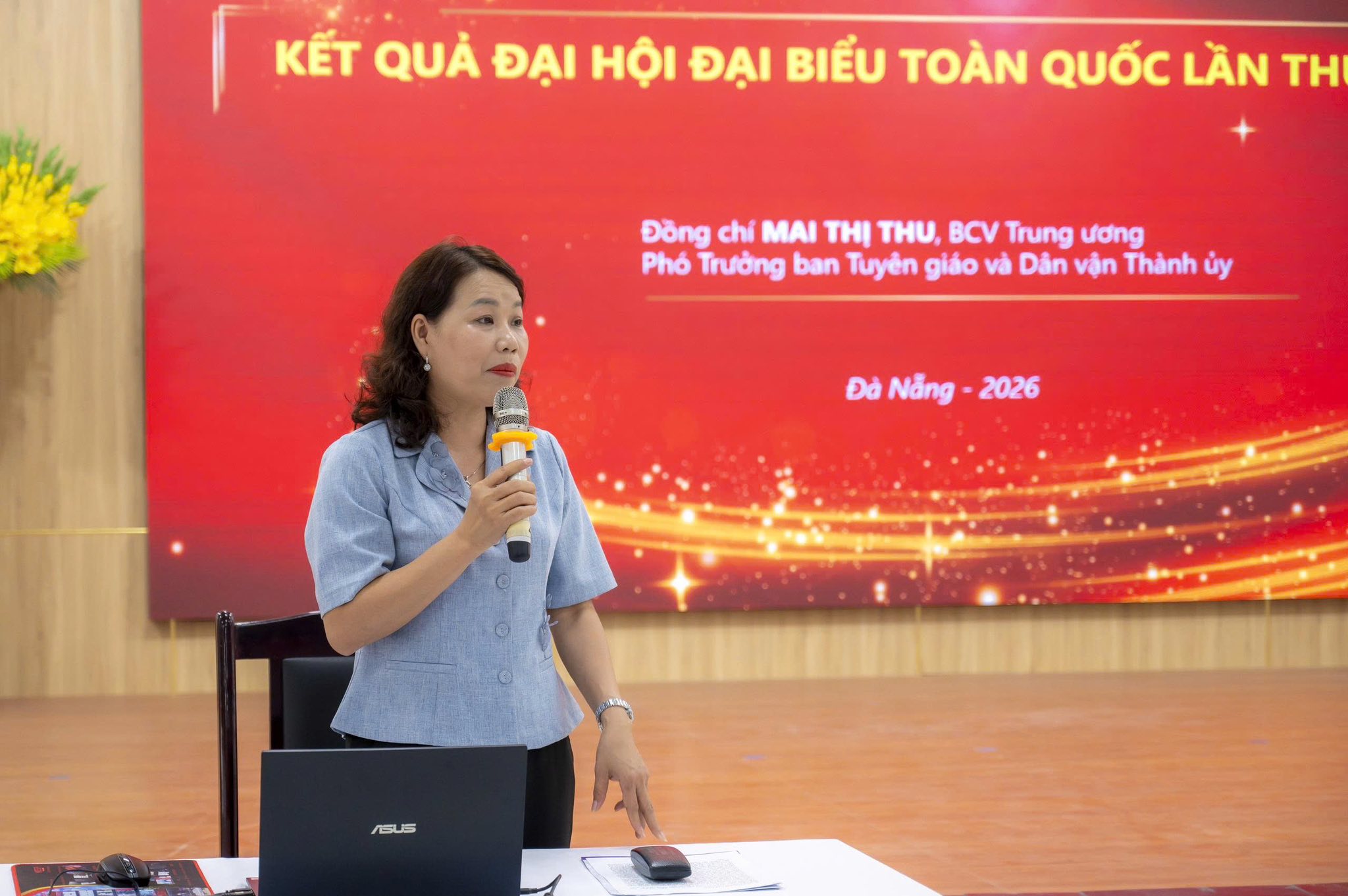 đồng chí Mai Thị Thu – Phó Trưởng ban Tuyên giáo và Dân vận Thành ủy Đà Nẵng báo cáo tại hội nghị